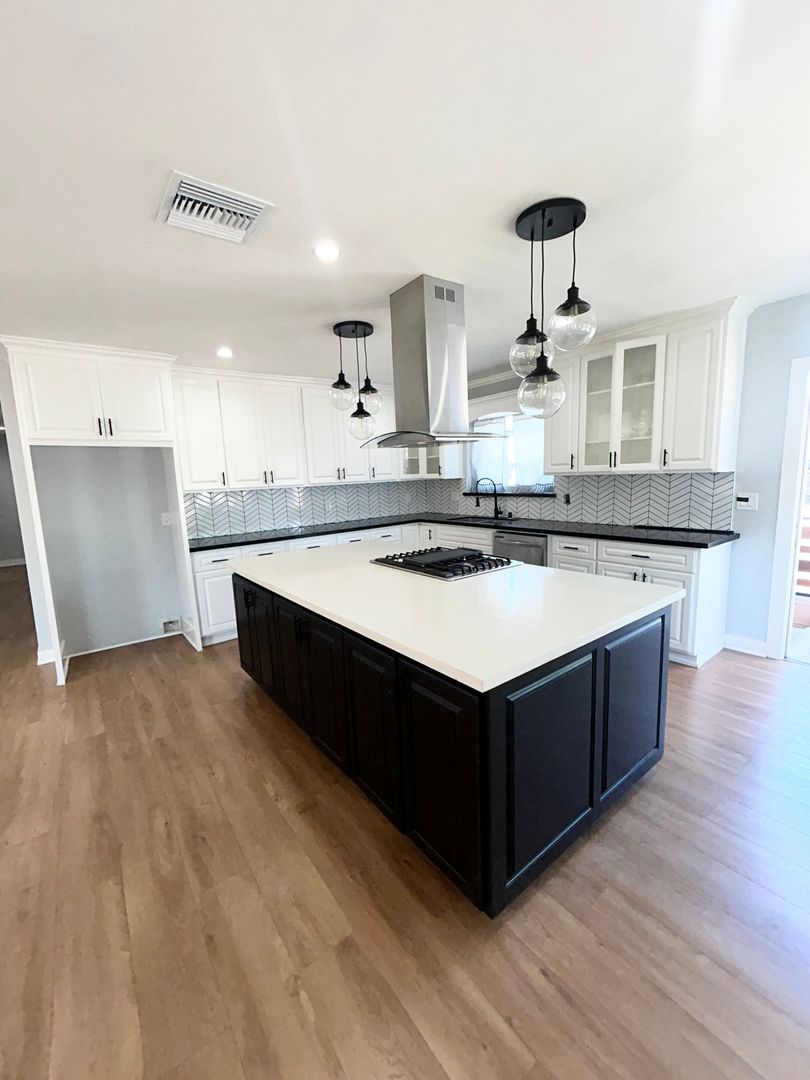 Beautifully updated 3-bedroom, 3-bathroom home located in Inglewood, CA. This spacious home features an open floor plan with a large living room and kitchen area, complete with modern appliances including a refrigerator, stove, and dishwasher. Enjoy laminate flooring, fresh interior paint, and abundant natural light throughout. Two primary bedrooms feature ensuite bathrooms and walk-in closets, with the main bedroom showcasing a cozy fireplace. The third bedroom is spacious with mirrored closet doors, ideal for guests, office space, or family needs. Additional features include laundry hookups, two parking spaces, and front and side yards for outdoor enjoyment. Please note: This home is on a duplex lot, the rear unit is currently occupied and the homes are fully separated by gates, offering a strong sense of privacy.