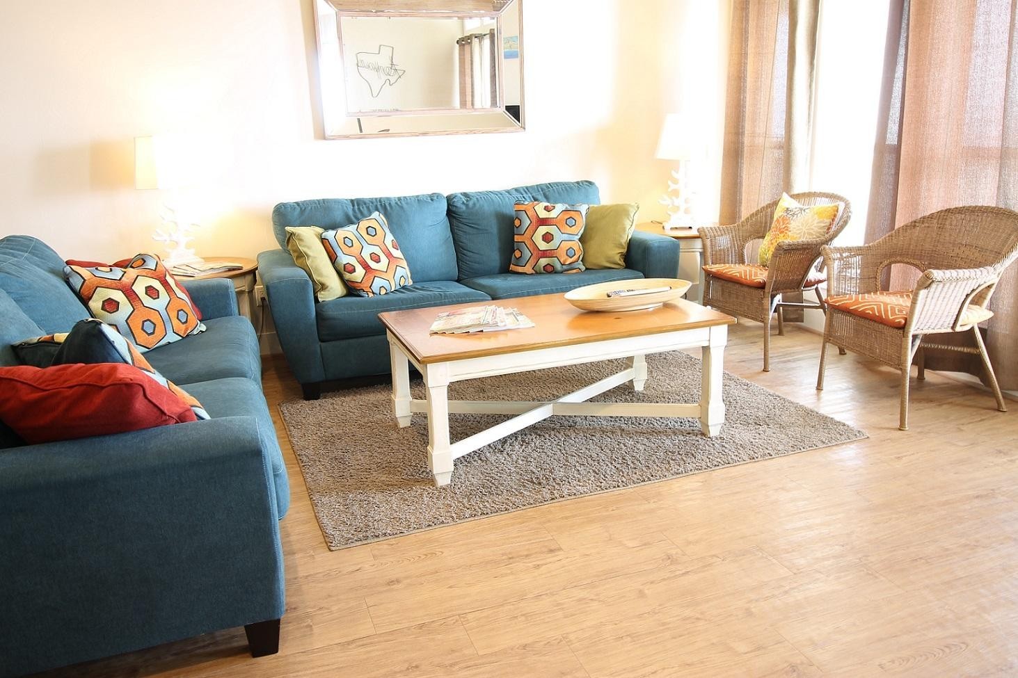 Beautiful 3 bedroom, 2 bath house (sleeps up to 12) located only a few steps from the beach. With its spacious living area and kitchen, this house is a must for your family vacation. Master suite features King size bed and garden tub with walk in shower. The two bedrooms on the opposite side of the house have 2 doubles each separated by a full bath. Kitchen has plenty of cabinet space and counter space for food preparation. Additional features are lawn furniture, dishwasher, washer/dryer, satellite TV with DVD player and high speed WiFi internet. Your pet is welcome with a fee. Downstairs features bar and picnic area. Linens available upon request. Bigger accommodations needed for weddings, family gatherings & events? …next door is its identical sister house called Once Upon a Time, behind both Front Row houses are 2nd Row Homes with incredible mezzanine/social decks both with views too called Paseo de la Playa and Peace, Love and Sandy Feet…enjoy :)