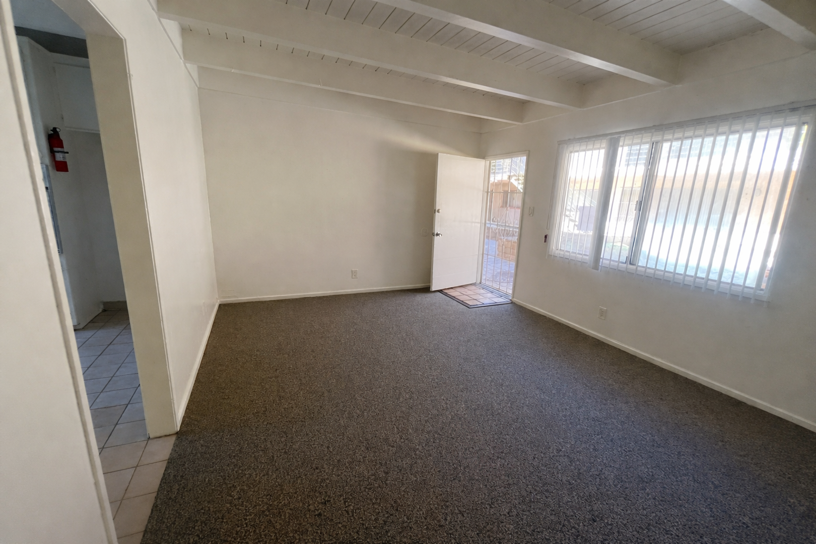 Enjoy the cool ocean breezes and peaceful ambiance of this gated community, designed to keep things quiet and secure. Inside, the unit features vaulted beam ceilings, a tiled kitchen, carpeted living area, and a full-sized bathroom.