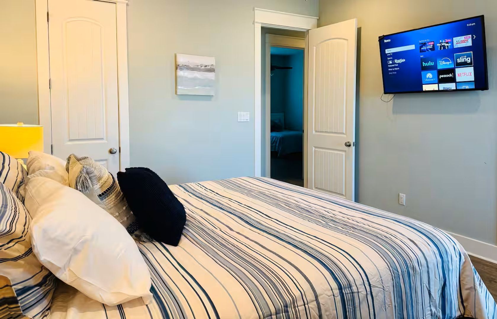 New construction 2nd row home added to our program Spring 2018. Features bonus mezzanine deck in addition to upper deck. Only a few steps to the beach, Seashells and Sunshine features stunning views from both decks. Plan a family reunion or wedding and have plenty of room with Happily Ever After, Once Upon a Time, and Paseo de la Playa. Plenty of room for your family or group with 3 bedrooms, 2 baths -- sleeping for 12. Master suite has King sized bed, TV, and separate walk in shower and tub. Bedroom 2 and 3 each have 2 full-sized beds, and there is a queen sleeper for extras. Has all modern appliances in roomy, kitchen area and modern appliances. Satellite-connected tvs located in all bedrooms. Your small pet is welcome with fee. Linens provided for additional fee.
